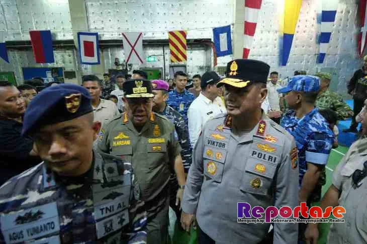 Reportase.top, Kapolda Bangka Belitung Irjen Pol Viktor T. Sihombing menghadiri pelepasan keberangkatan mudik gratis Lebaran 2026 menggunakan kapal perang TNI AL, KRI Semarang, Jumat (27/3/26). Pelepasan dilakukan secara resmi oleh Gubernur Babel Hidayat Arsani.