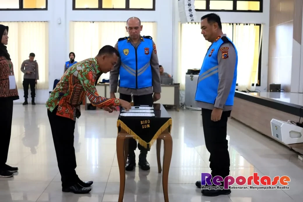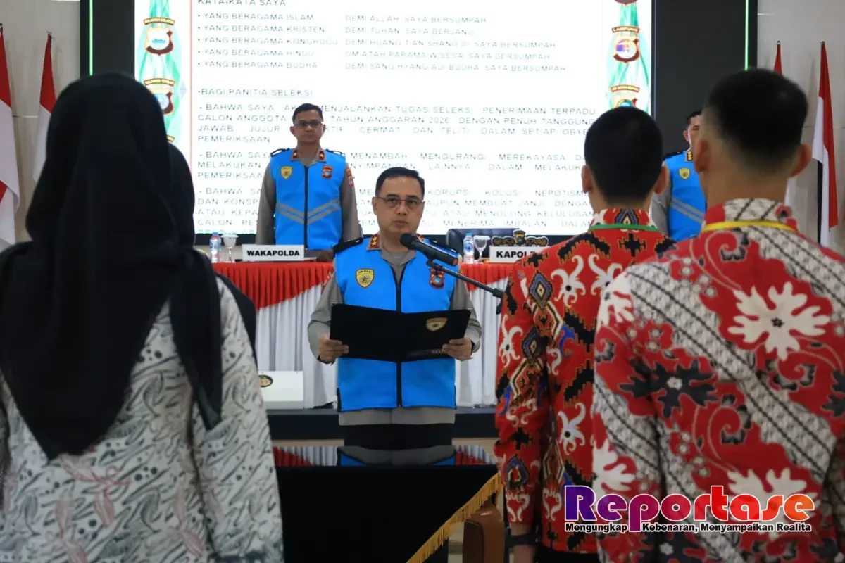 Reportase.top, Polda Bangka Belitung menggelar penandatanganan Pakta Integritas serta pengambilan sumpah seleksi penerimaan terpadu calon anggota Polri tahun anggaran 2026 di Gedung Tribrata, Selasa (31/3/26).
